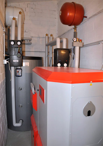 Zwei Einfamilienhäuser und der Arbeitsraum eines Floristik-Unternehmens werden von einer 25 kW Pelletsheizung sorgfältig gesteuert mit Wärme versorgt. Ein überdimensionierter und „gieriger“ alter Ölkessel fand sich im Zuge der Umrüstung auf dem Schrottplatz wieder. Der neue regenerative Brennstoff sorgt nun für eine beruhigende vierstellige Einsparung von Jahr zu Jahr